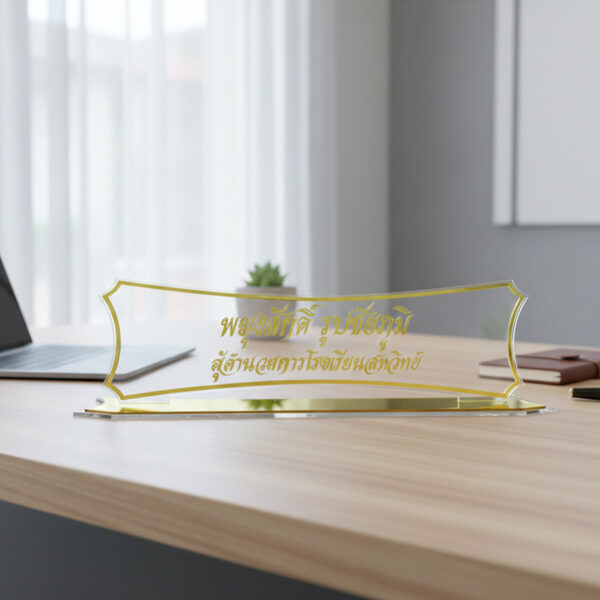 ป้ายชื่อตั้งโต๊ะทำงาน อะคริลิคใส กรอบทอง