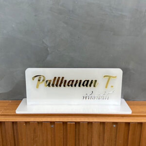 ป้ายชื่ออะคริลิคตั้งโต๊ะ ตัวอักษรนูนสีทอง