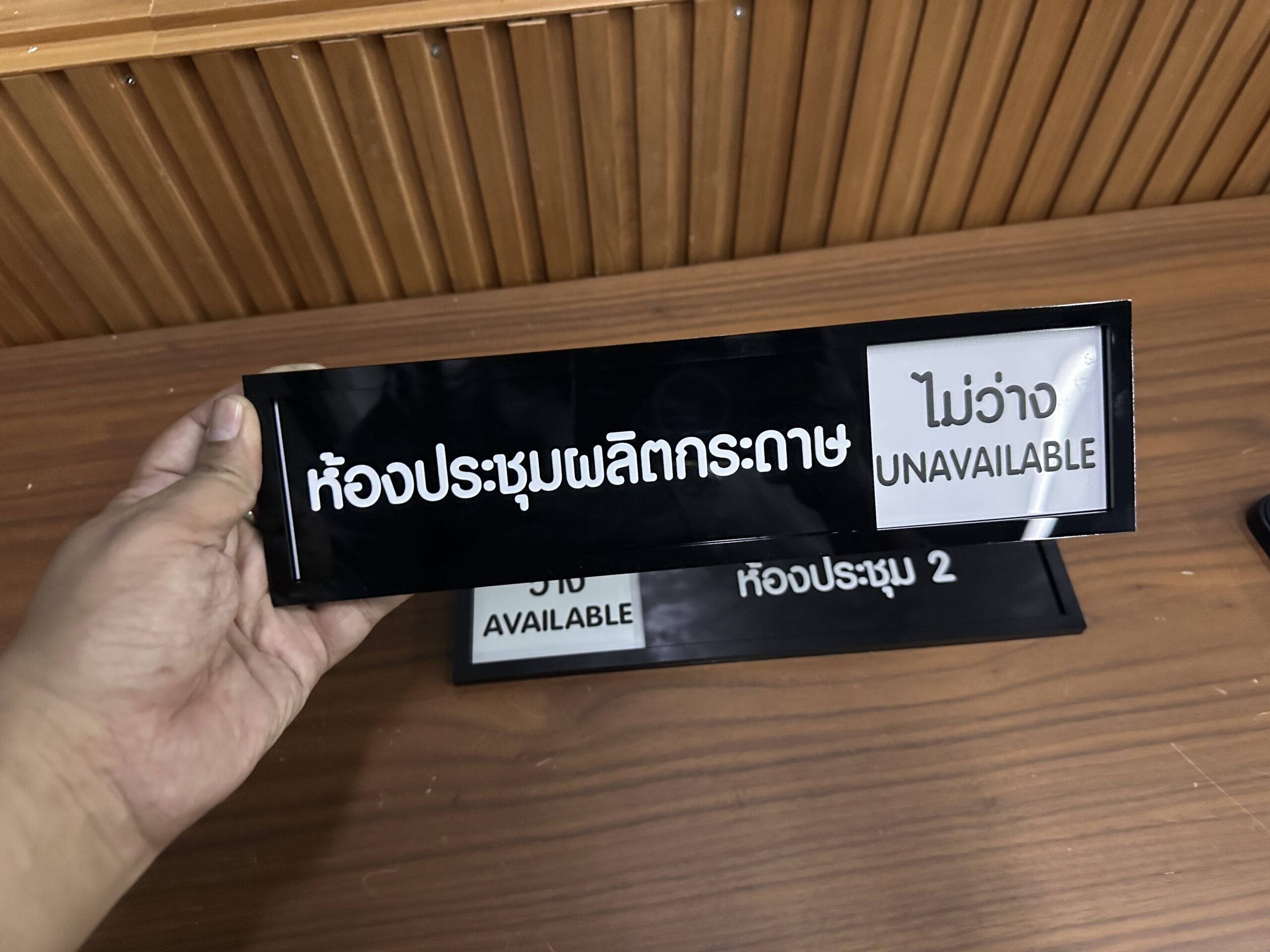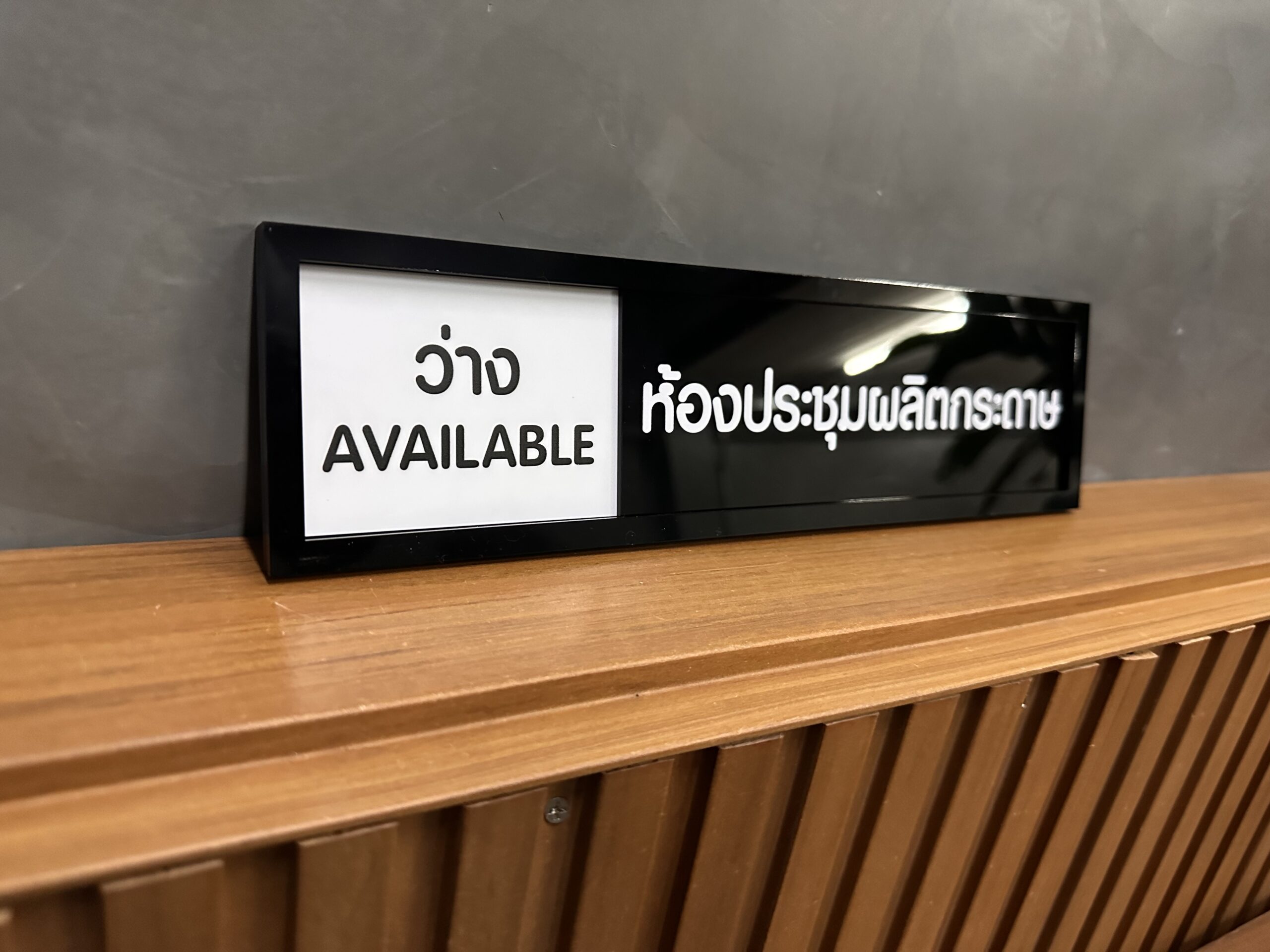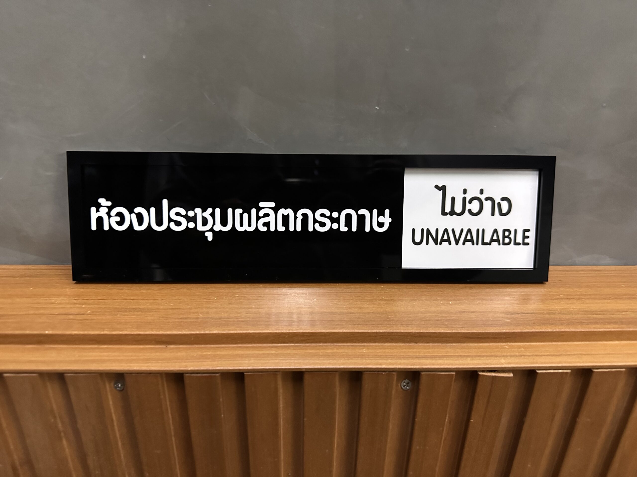ป้ายเลื่อนสถานะ ว่าง-ไม่ว่าง หน้าห้องประชุม