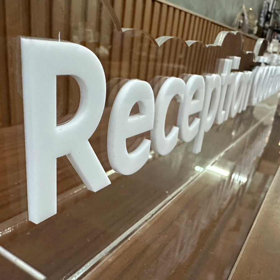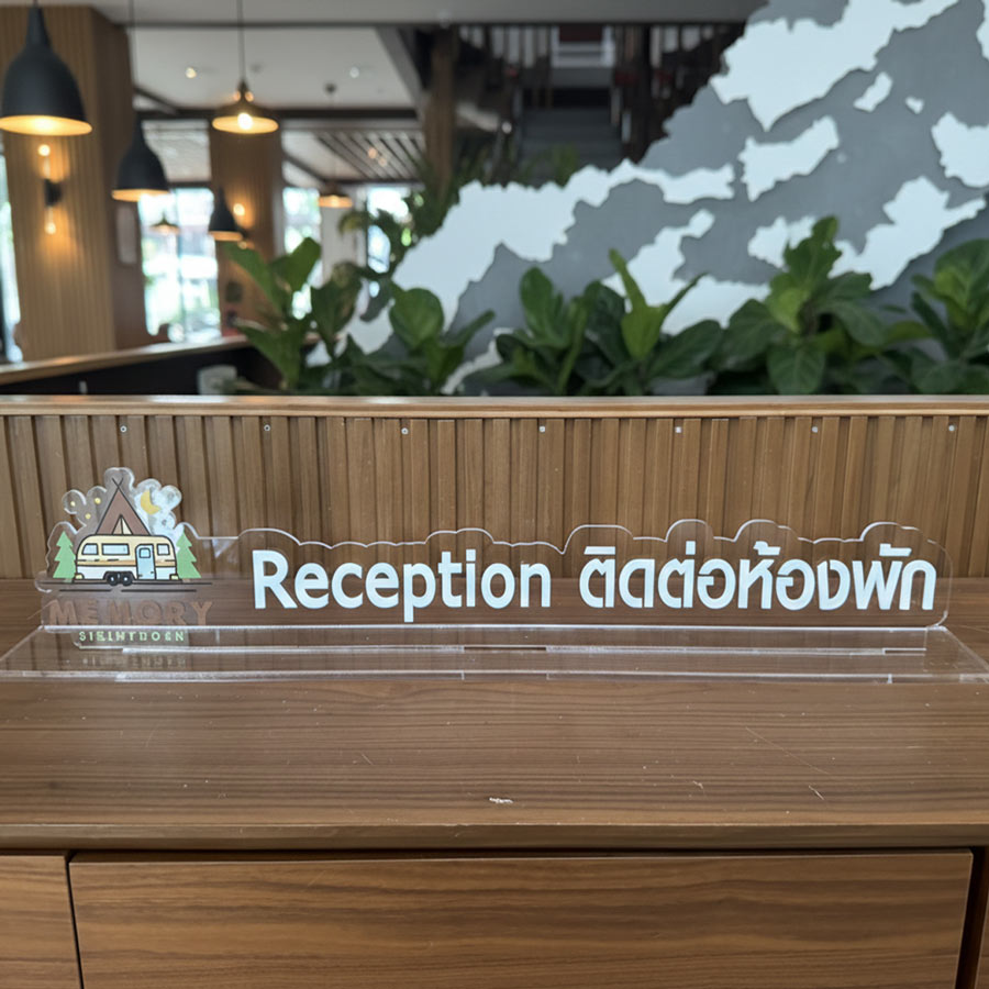 ป้าย Reception ตัวอักษรไดคัท ตั้งบนเคาน์เตอร์