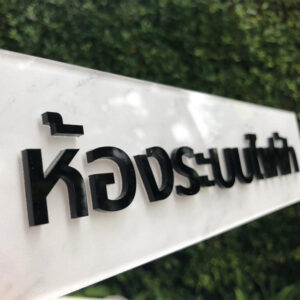 ป้ายอะคริลิคโลโก้ตัวอักษรนูน ติดข้อความ